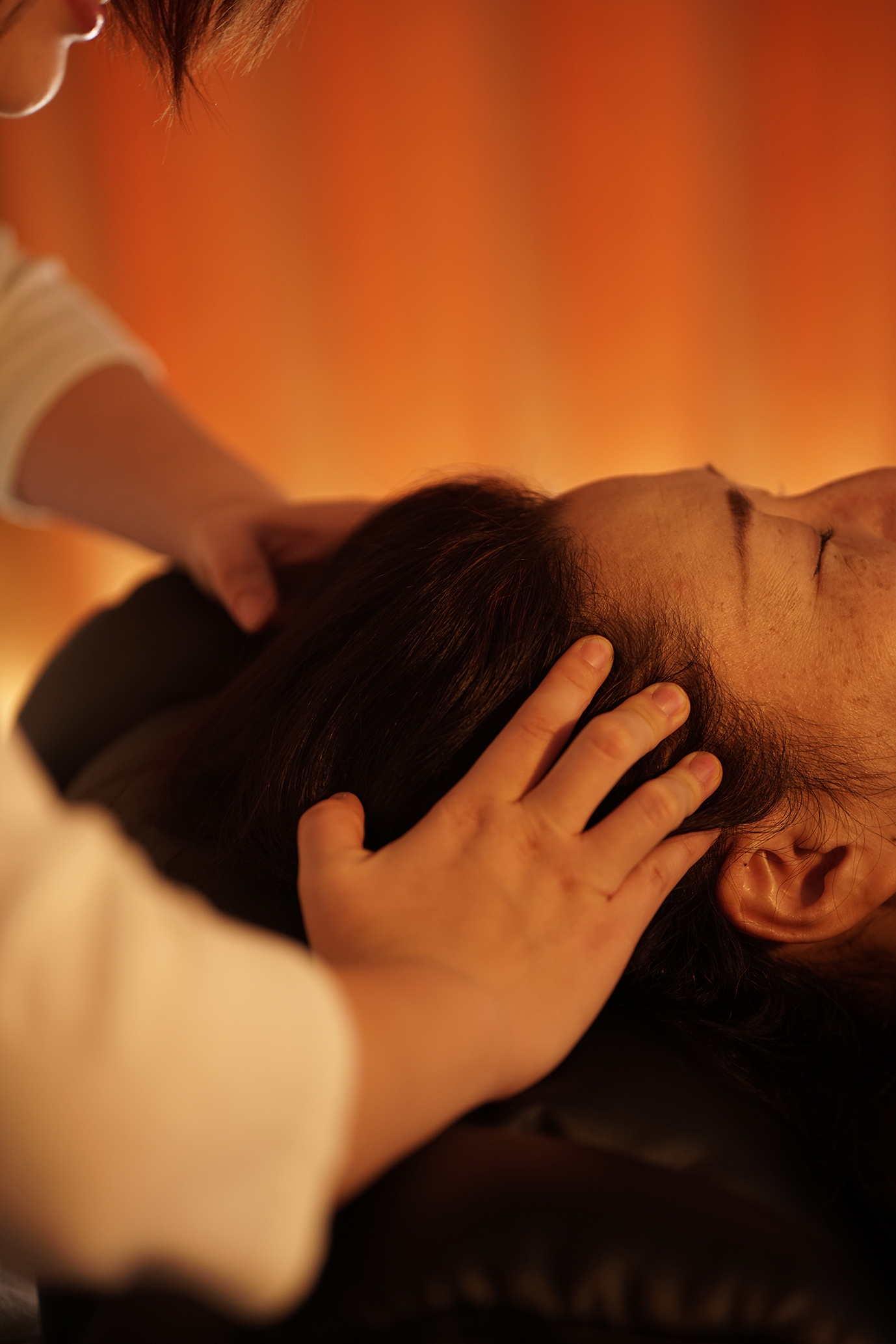 頭痛・脳疲労・眼精疲労への効果が非常に高く、癒し効果の高い手技を合わせる事で自律神経を落ち着かます。