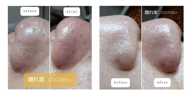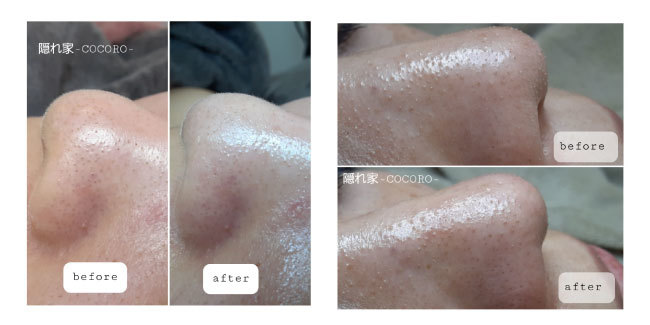 毛穴エクストラクション後は鎮静し毛穴を引きしめていき、お肌にもしっかりと栄養を入れていきますのでスッキリ、つるんとしたお鼻になります。