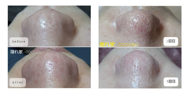 長年蓄積された黒ずみ毛穴詰まりの場合は、キレイに取り除くのに数回かかる場合がございます。